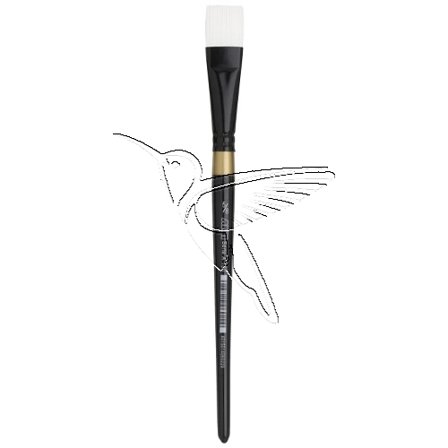 Pincel plano 5/8. Pincel de pelo sintético blanco, con una abrazadera sin costuras de color plateado y un mango corto lacado en negro.