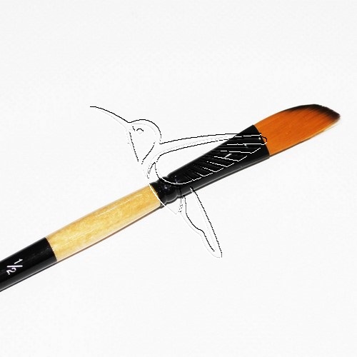 Pincel en forma de daga A300 con pelo sintético en dos colores, con una abrazadera de color negro y un mango corto lacado en dos colores.
