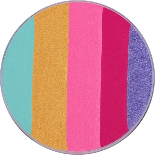 Los Superstar Dream Colours están hechos de una pintura facial y corporal a base de agua de alta calidad y muy fácil de usar que cumple con las estrictas regulaciones de la Directiva Europea de Cosméticos (1223/2009/EG). El maquillaje se produce en los Países Bajos, no contiene perfume, gluten, microplásticos ni parabenos y no ha sido probado en animales. Los colores son muy hermosos y brillantes, la pintura es fácil de trabajar y también es fácil de quitar. Una fina capa de pintura Superstar es suficiente para proporcionar una buena base de cobertura. La pintura se seca rápidamente y no se mancha. El agrietamiento de la superficie de la pintura es normal y no afectará el rendimiento de la pintura. La mezcla de colores en el frasco es normal y no afecta el resultado final. Los Dream Colours se pueden aplicar frotando con una esponja o con un pincel que dará un efecto sorprendente, porque los colores se difuminan entre sí. El llamado efecto arcoíris.