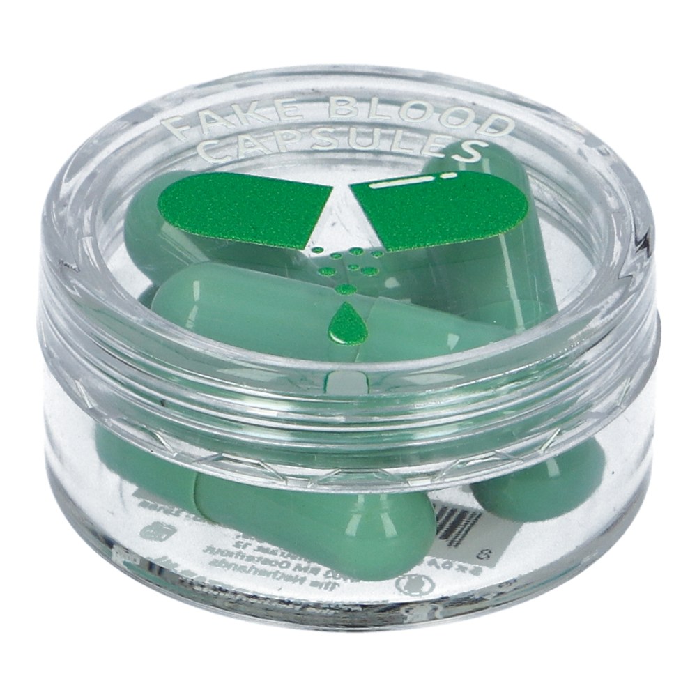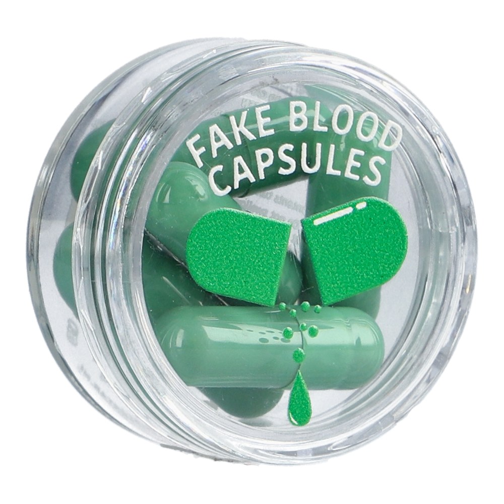 Las Cápsulas de Sangre verde artificial Superstar son perfectas para crear un efecto de sangre verde, transparente y ligeramente espumoso, al contacto con la saliva. Contienen un polvo naranja que se vuelve verde brillante al instante en la boca, ideal para monstruos aterradores, extraterrestres u otras criaturas de otro mundo.