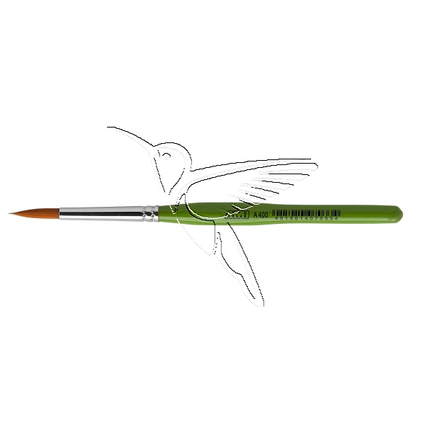 Pincel redondo nº 10 de pelo sintético,con una abrazadera de color plateada sin costuras y un mango corto, pintado de color verde.